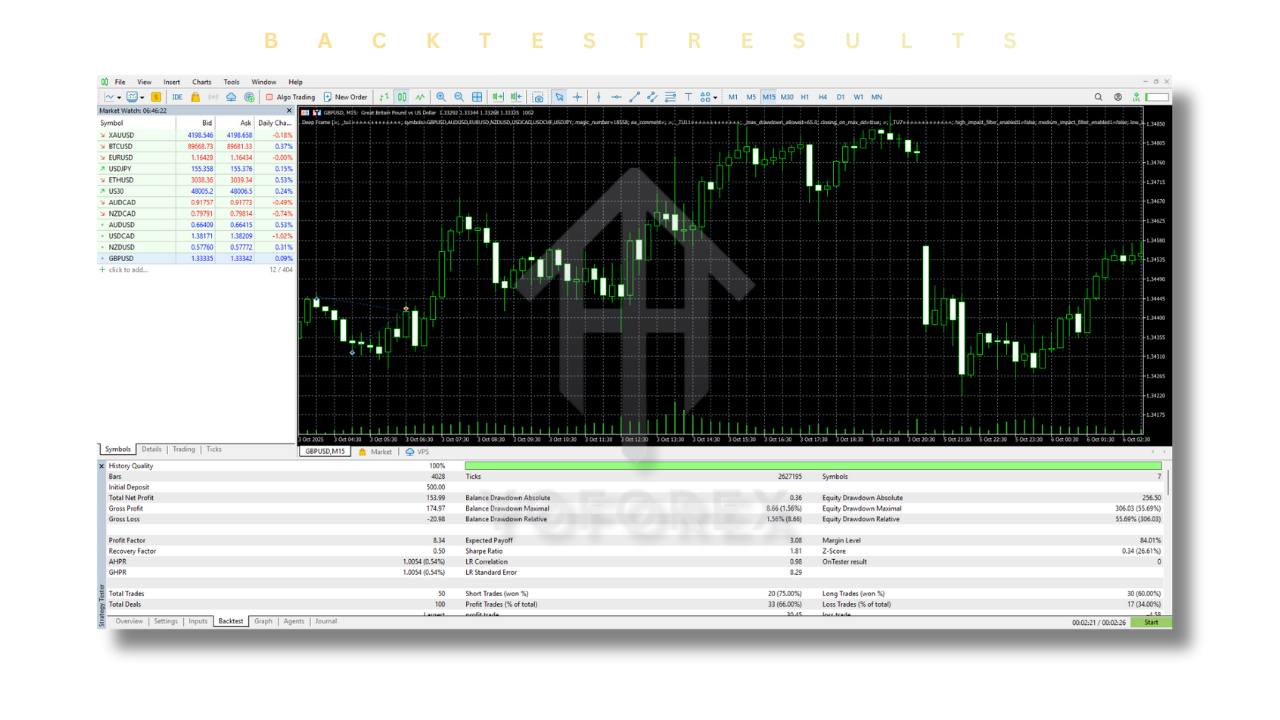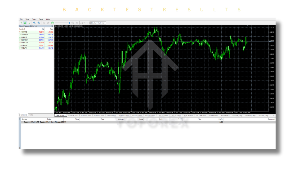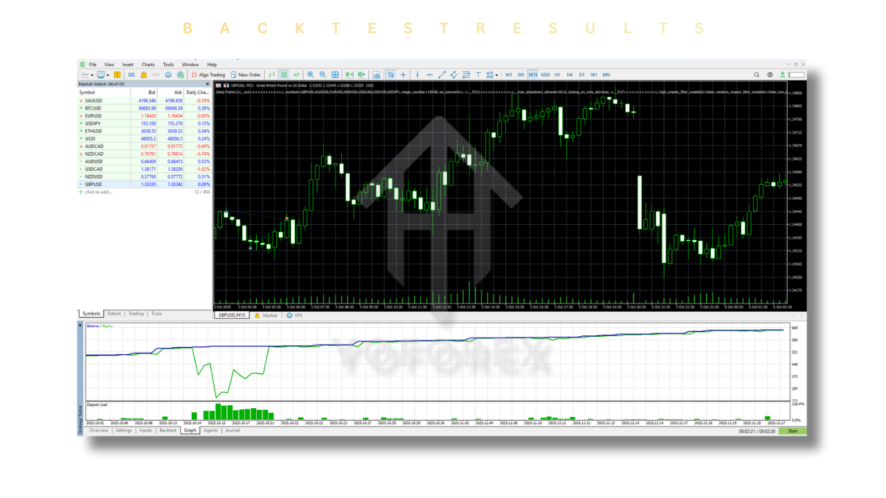 Backtesting is one of the most important features for any automated trading system, and Deep Frame EA V1.0 MT5 delivers solid results in this area. The EA has been rigorously tested using historical market data to ensure its reliability and profitability.