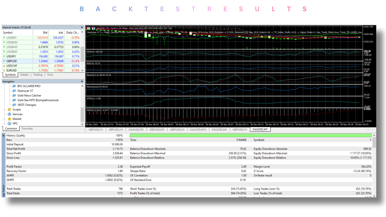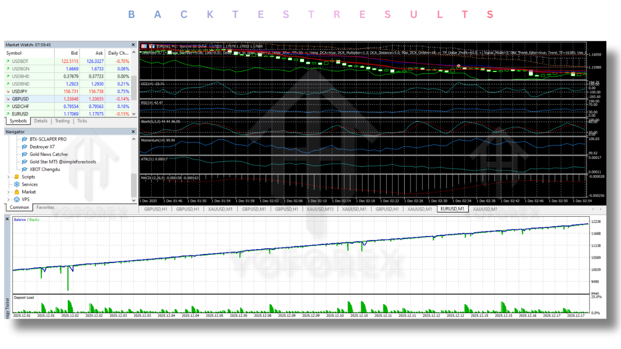 The core objective of Destroyer X7 EA is to provide consistent and disciplined trading without relying on manual intervention. It is designed to remove emotional decision-making and maintain a systematic approach even during high-volatility periods.