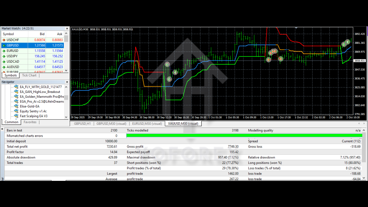 Backtesting on MT4 has shown that the EA Golden Mammoth Pro V8.0 delivers consistent profits on the M5 timeframe, particularly for the EURUSD, GBPUSD, and XAUUSD pairs. In the simulated trading environment, the EA was able to maintain a positive win rate with tight stop losses and small profit targets. For traders looking to assess the EA’s performance before live trading, backtesting is a highly recommended option.