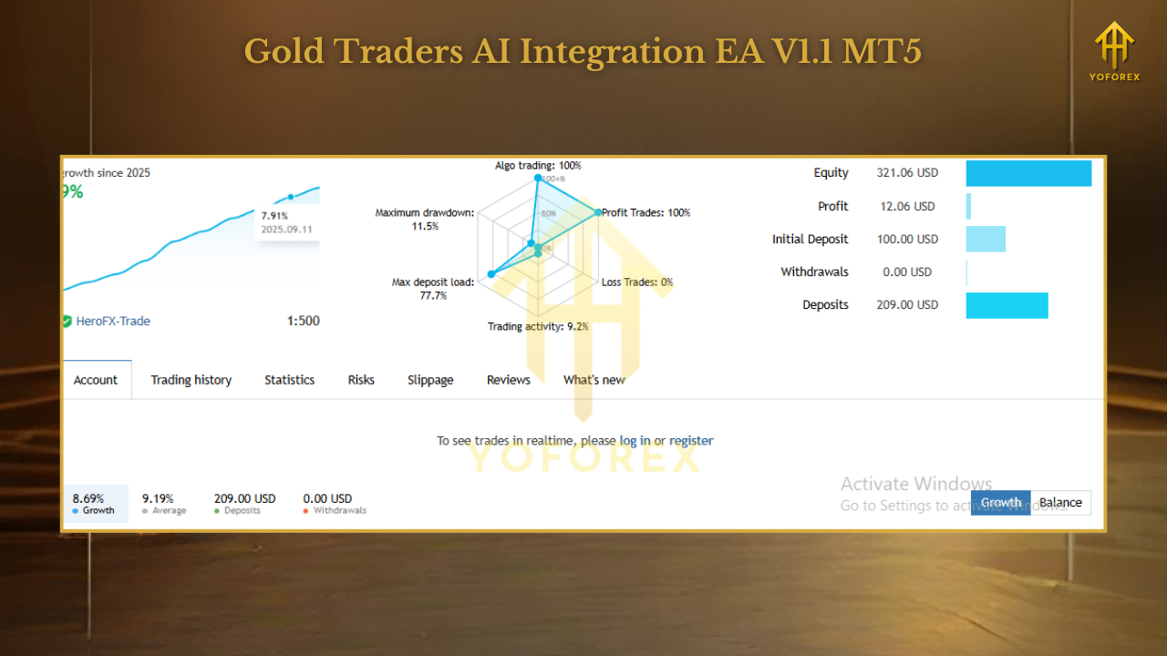 As with all trading systems, there are risks involved in using an automated trading strategy. Always use demo accounts to test any EA before going live. Gold Traders AI Integration EA V1.1 MT5 is designed to enhance your trading decisions, not to eliminate risk. Never risk more than you can afford to lose.