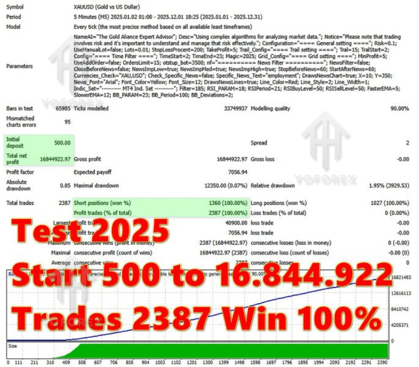 - Backtest Results: In backtesting on XAUUSD, Golden Dome EA has demonstrated an average win rate of 65%, with a drawdown of less than 15% over a 12-month period.