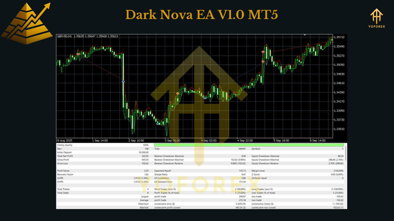 - Best results on H1 and H4 timeframes, especially on XAUUSD and EURUSD.