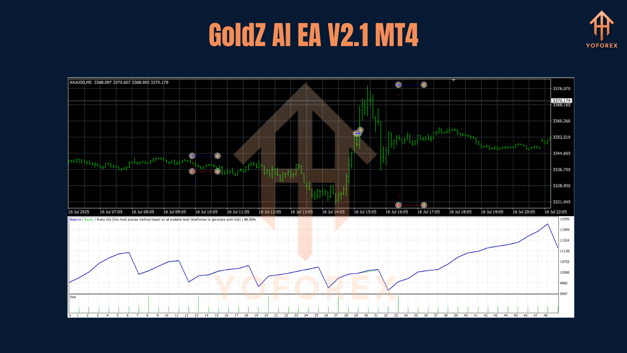 Gold (XAUUSD) is one of the most actively traded instruments in forex, known for its volatility and liquidity. That same volatility can be dangerous without strict risk control. The GoldZ AI EA V2.1 MT4 solves this problem by combining AI-powered decision-making with scalping logic, optimized for the M5 timeframe.