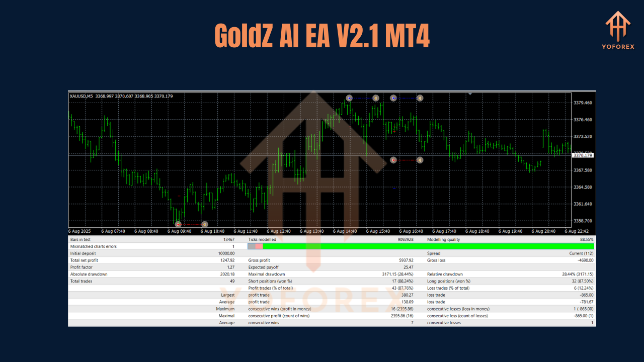 Looking for a gold-focused EA with AI intelligence? The GoldZ AI EA V2.1 MT4 gives you scalping power on the M5 timeframe with low capital requirements.