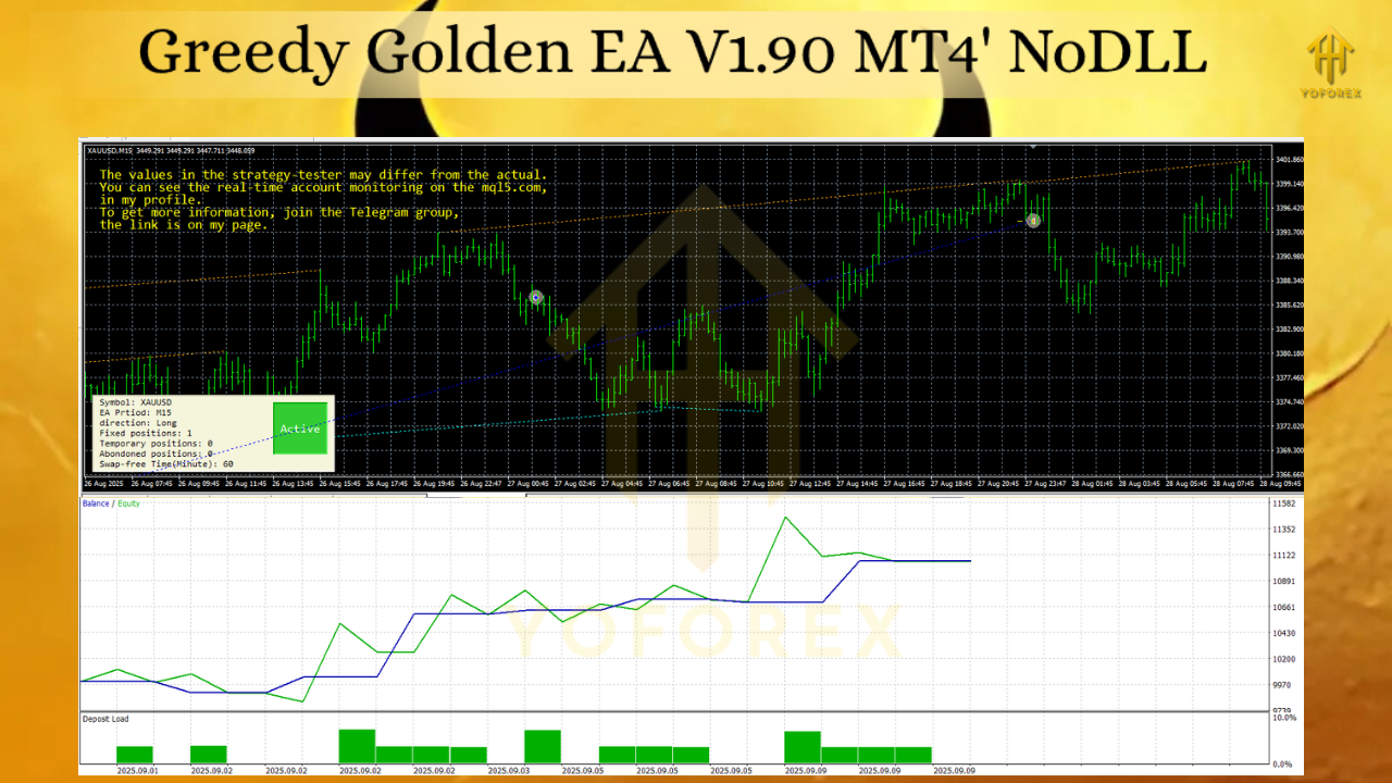 Unlike generic EAs that attempt to trade multiple currency pairs, Greedy Golden EA is specialized for gold. Its targeted design allows it to fine-tune entry and exit strategies for XAUUSD specifically. Version 1.90 introduces greater stability and consistency, making it more reliable than its predecessors.