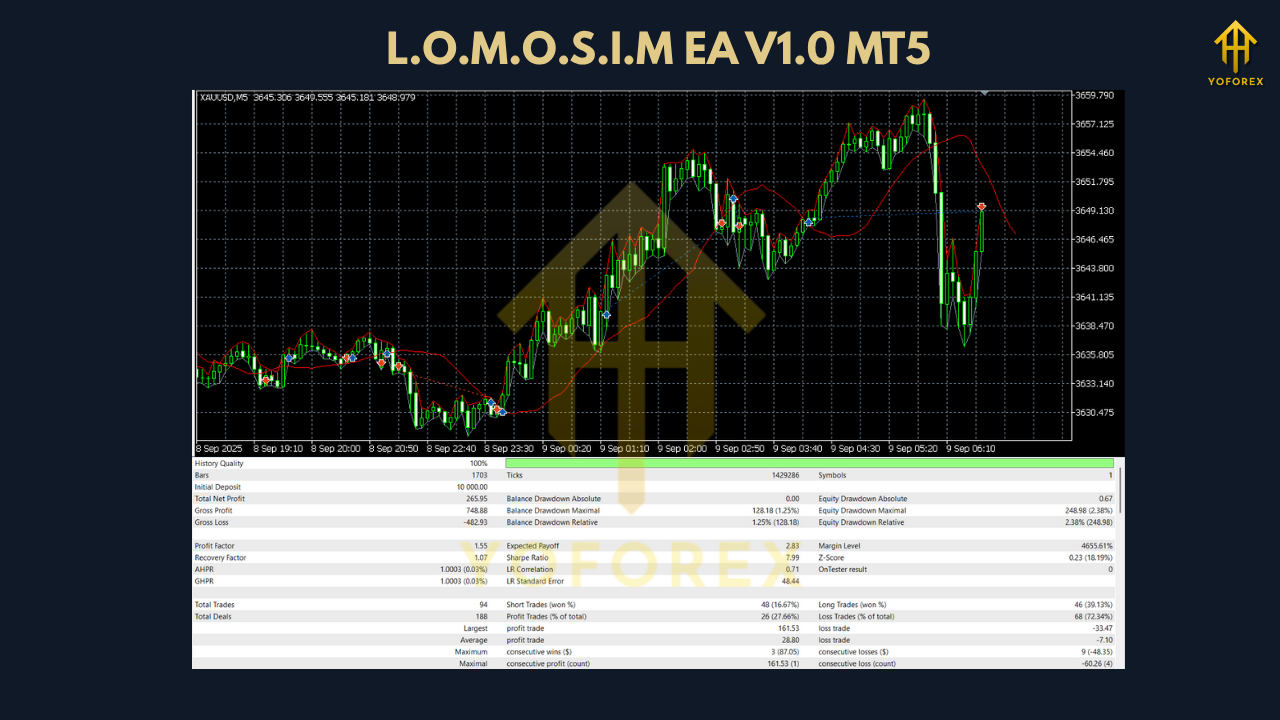 In a sea of forex robots promising unrealistic returns, L.O.M.O.S.I.M EA V1.0 stands out for its realism, reliability, and flexibility. It offers a professional-grade solution for traders who want more than just a “set and forget” EA. With its ability to work on any pair and timeframe, it truly puts the power of algorithmic trading into your hands.