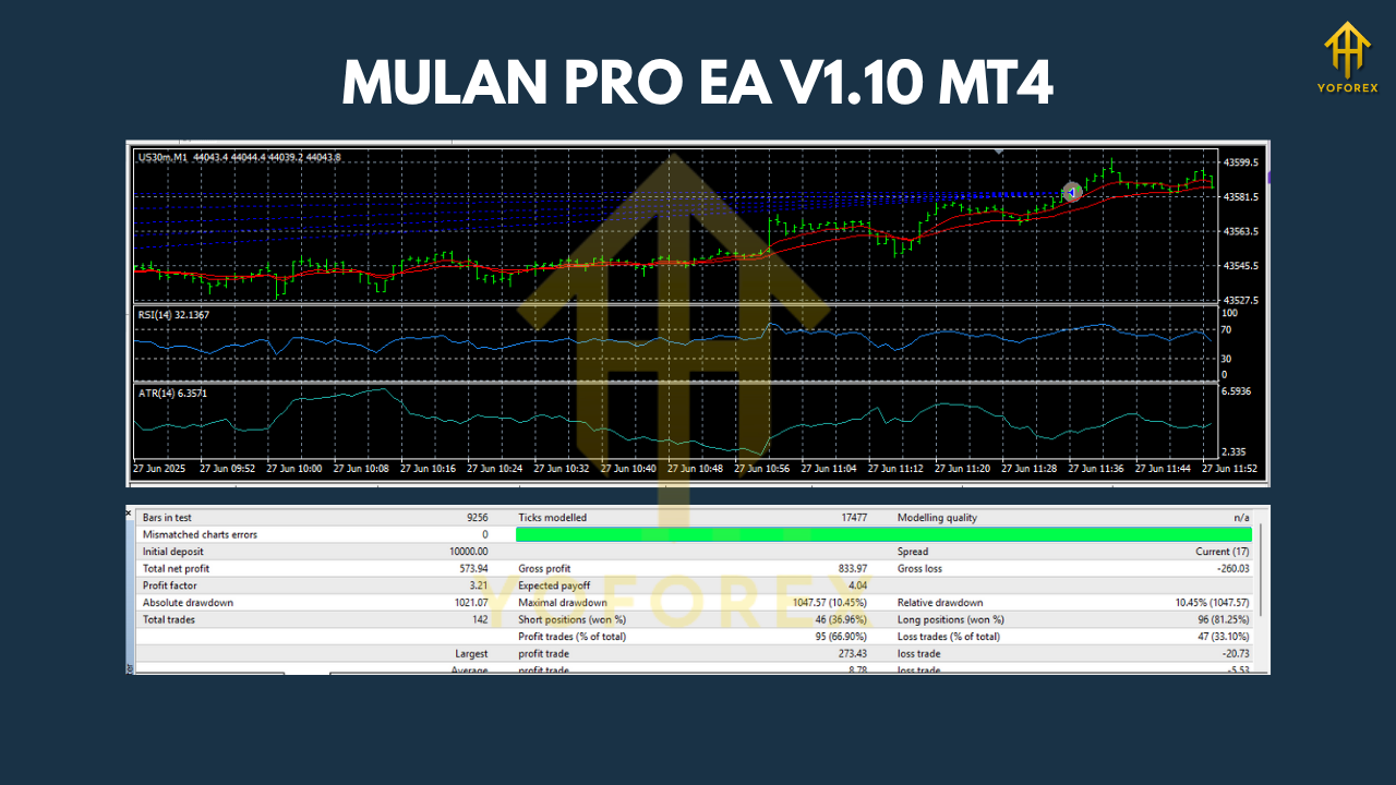 MULAN PRO EA V1.10 is a high-performance automated trading system that executes trades based on technical market analysis, optimized entry logic, and built-in risk management strategies. It removes emotional bias and human error, allowing traders to stay active 24/5 without constantly monitoring the charts.