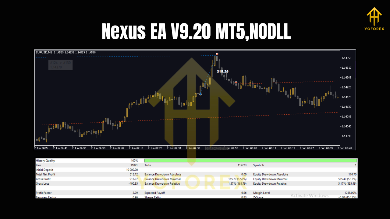Most EAs lean on lagging indicators or complex neural something-something; Nexus goes the opposite way. It’s built on lightweight math models—think distance, range, velocity of price—so it reacts fast and behaves predictably. That’s a big deal when the market is sideways: spreads can chew you, fakeouts are common, and complex filters can overfit or stall. Nexus’s logic is deliberately lean, helping it: