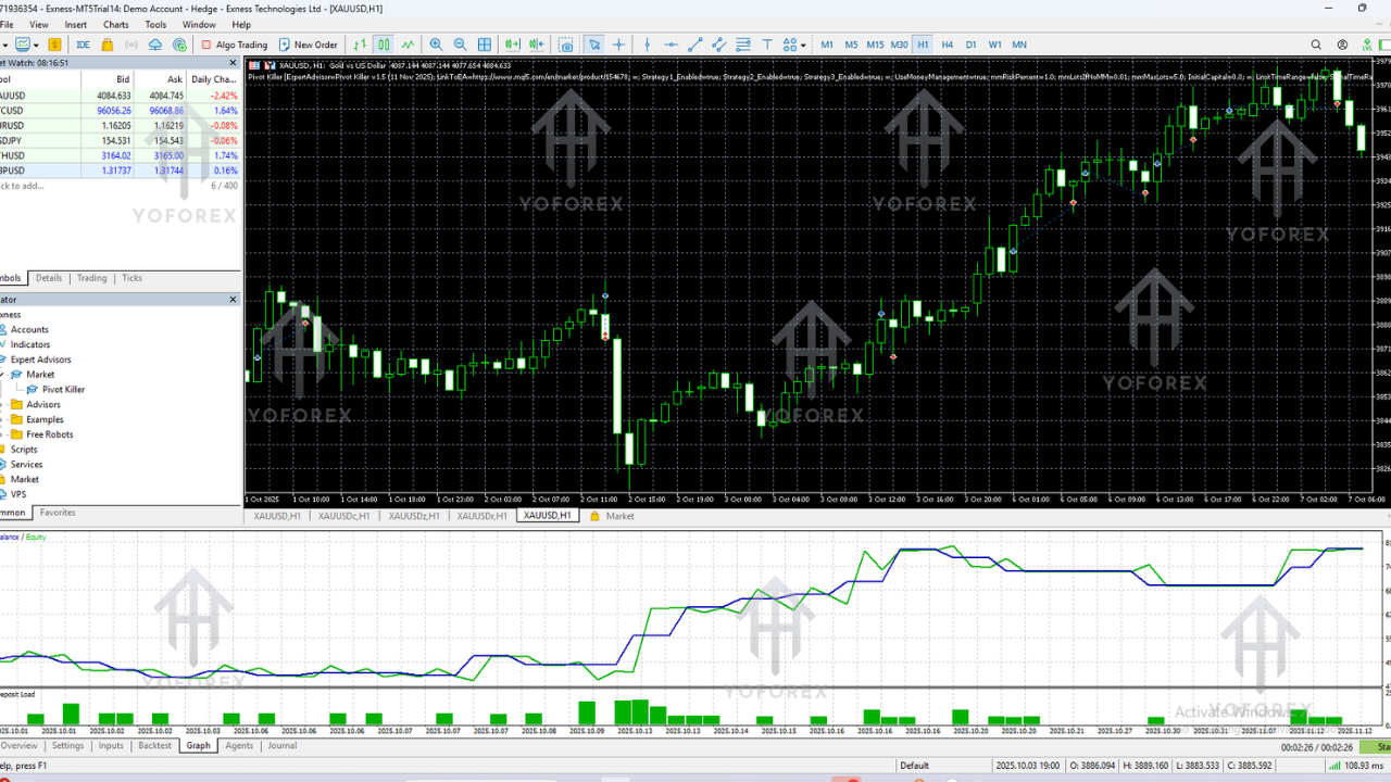 Over multiple tests across the last 3–5 years, Pivot Killer EA V1.5 performed consistently well, especially on structured markets like EURUSD and USDJPY. Even in volatile zones like gold, the bot maintained a stable growth curve with controlled risk settings.