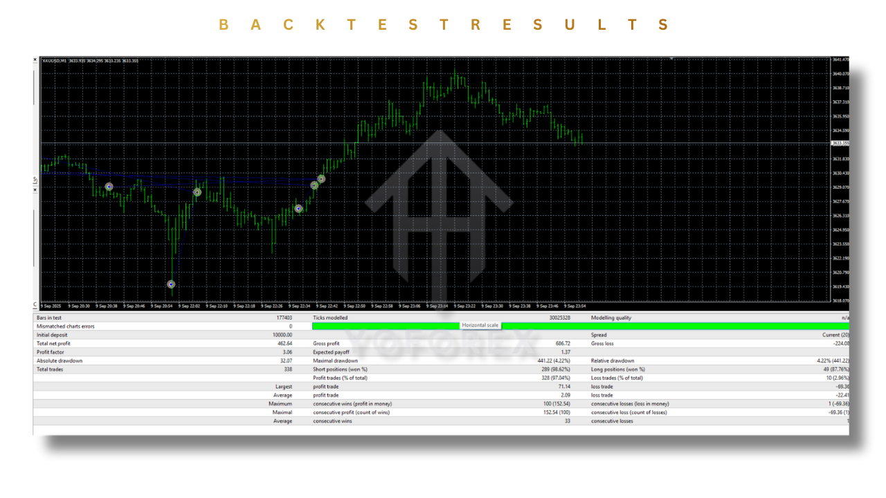 To determine how Quantum King EA performs in real trading conditions, we conducted an extensive backtest across different market scenarios. Here’s a summary of the key performance metrics: