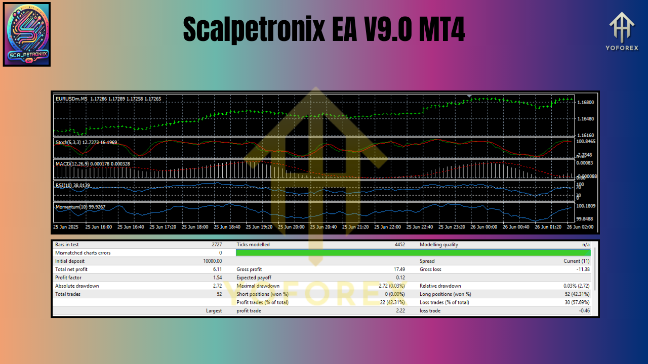 Every good trader knows: “Trust, but verify.” Backtesting and live forward testing are critical when choosing an EA. Scalpetronix EA V9.0 MT4 has been tested on multiple pairs and market conditions.