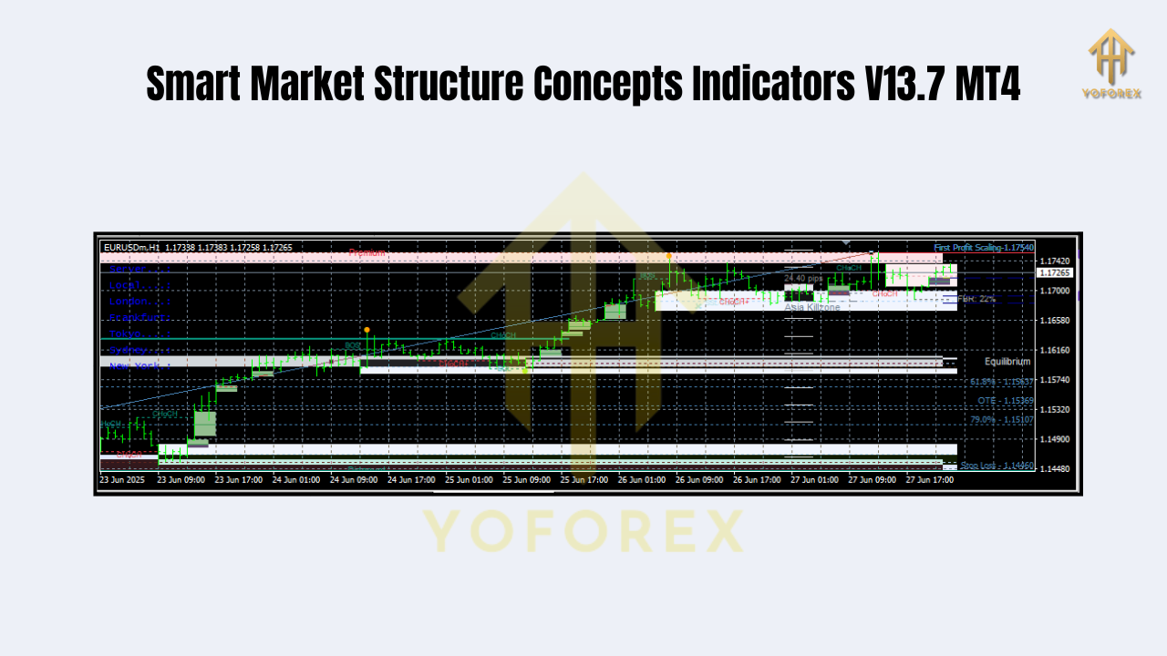 The Smart Market Structure Concepts Indicator V13.7 MT4 gives you a visual edge that’s hard to ignore. Whether you scalp the M5 or swing the H1, the power of BOS, CHoCH, and institutional price levels is now at your fingertips.