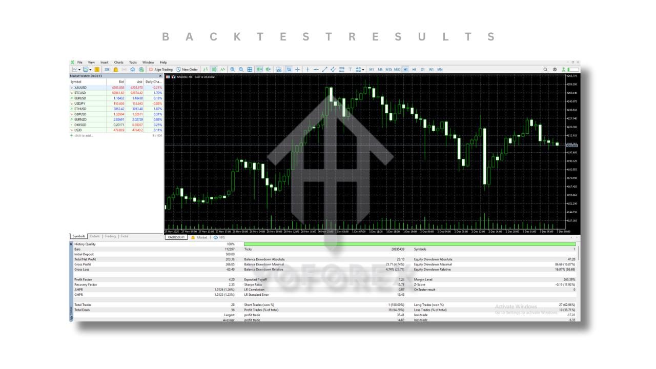 | Pair Tested | XAUUSD (Gold) |