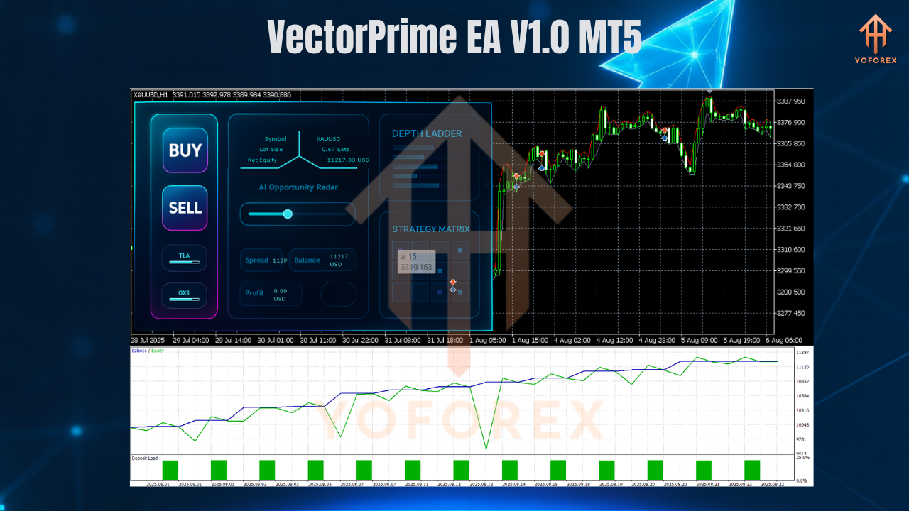 The VectorPrime EA is a MetaTrader 5 expert advisor optimized for single-instrument momentum trading on the H1 timeframe. Unlike many robots that depend on news feeds or multi-symbol logic, VectorPrime works independently with a modular, scenario-driven approach.